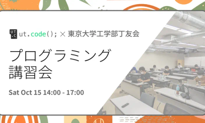 ut.code(); は工学部丁友会と合同で、東京大学の学部生および大学院生を対象にプログラミング講習会を以下の通り実施いたします。 概要 HTML・CSS・JavaScript の基礎を学び、おみくじアプリをはじめとする簡単なウェブアプリケーションを作成します。 ( ut.code(); が実施している体験会と同じ範囲となります。) 開催日時 10/15(土) 14:00〜17:00 開催場所 オンライン(Zoom) 想定レベル プログラミング入門レベルを習得していて、プログラミング自体への抵抗はない方 (HTML・CSS・JavaScript については Hello World! を...